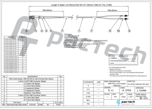 Connector Type: LC/UPC to ST/UPC (LC Uniboot available upon request)